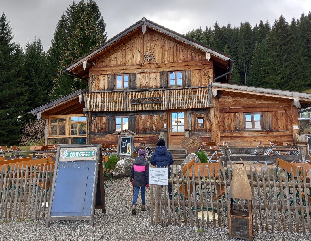 Eine gemütliche Hütte am Südhang des Edelberges, auf einer wunderschönen Hochebene. Es gibt eine urige Stube, eine große Sonnenterrasse und einen Outdoor/Indoor-Spielplatz an/in der Scheune nebenan, mit Kletterwand, Matten, Hängebrücke, Rutschbahn, und so weiter. Die Hütte ist ein beliebtes Ziel für Familienausflüge, eine gemütliche Einkehr, Übernachtungen und Veranstaltungen. Das gemeinsame Ziel: Schlemmen und Verweilen zwischen Bergwiesen und Wäldern. Besonderheit: man kann auch vorab ein Hüttentaxi buchen. Ganzjährig geöffnet. Hier geht es zur Homepage mit allen aktuellen Informationen [unbezahlte Werbung].